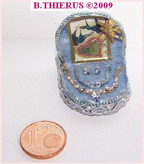 La petite scène galante ( côté droit) est en porcelaine de Limoges et l'ange musicien( alcôve)est en résine.